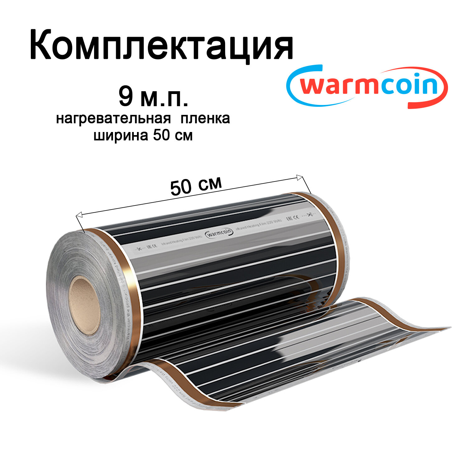 Теплый пол Warmcoin инфракрасный 50см 220Вт/м.кв. под ламинат, 9 м.п. информация: