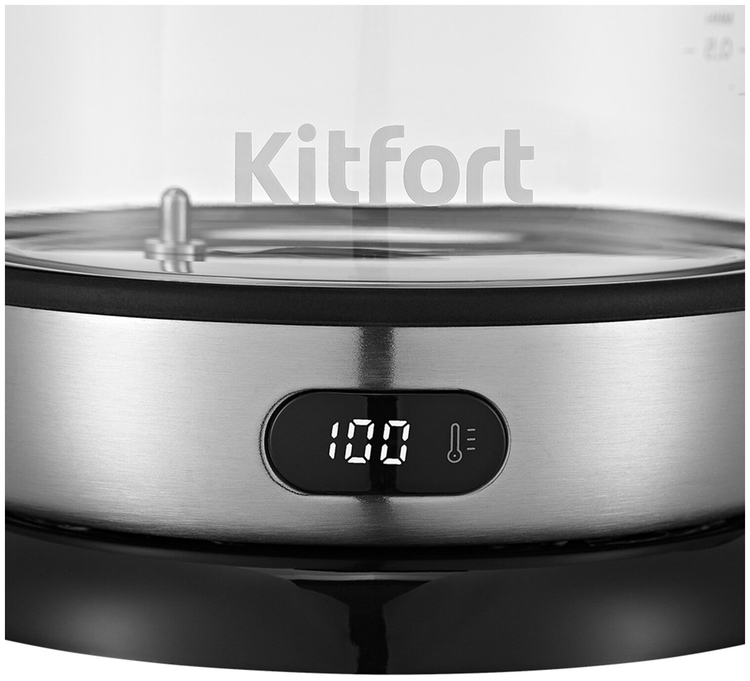Чайник Kitfort КТ-6155, 1.7 л, 2000 Вт, выбор температуры нагрева, дисплей, прозрачный металлик