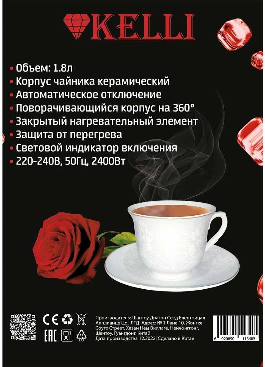 чайник kelli kl-1340 керамич., 1,8л черный информация: