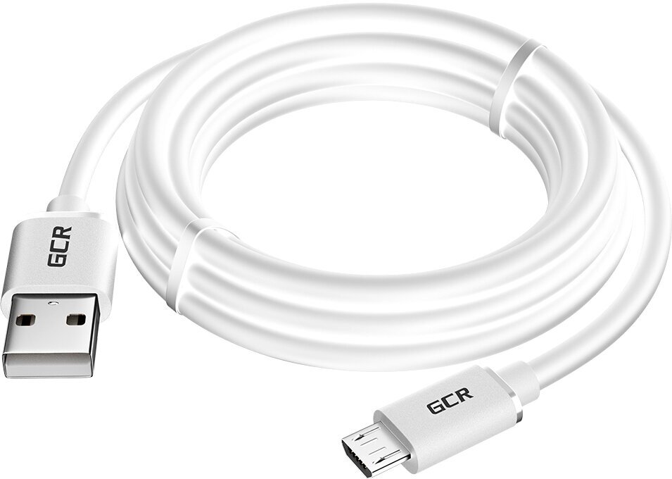 Кабель GCR 3.0 метра MicroUSB, белый, быстрая зарядка, (7753234)