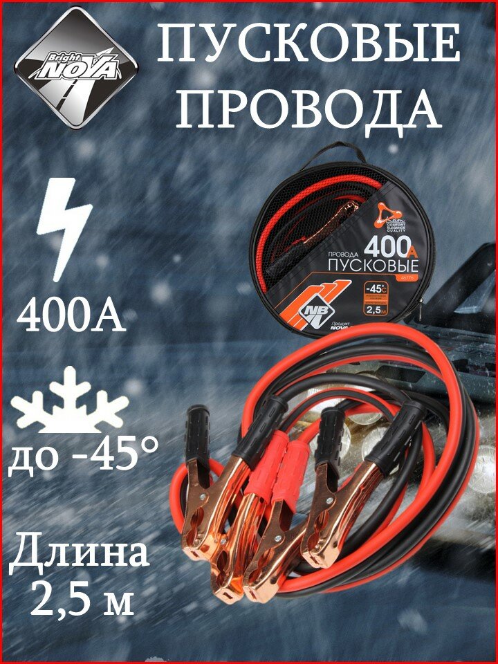 10 цен на Провода пусковые Nova Bright-fusion 400 А 2,5 м в сумке морозостойкие до -45*С