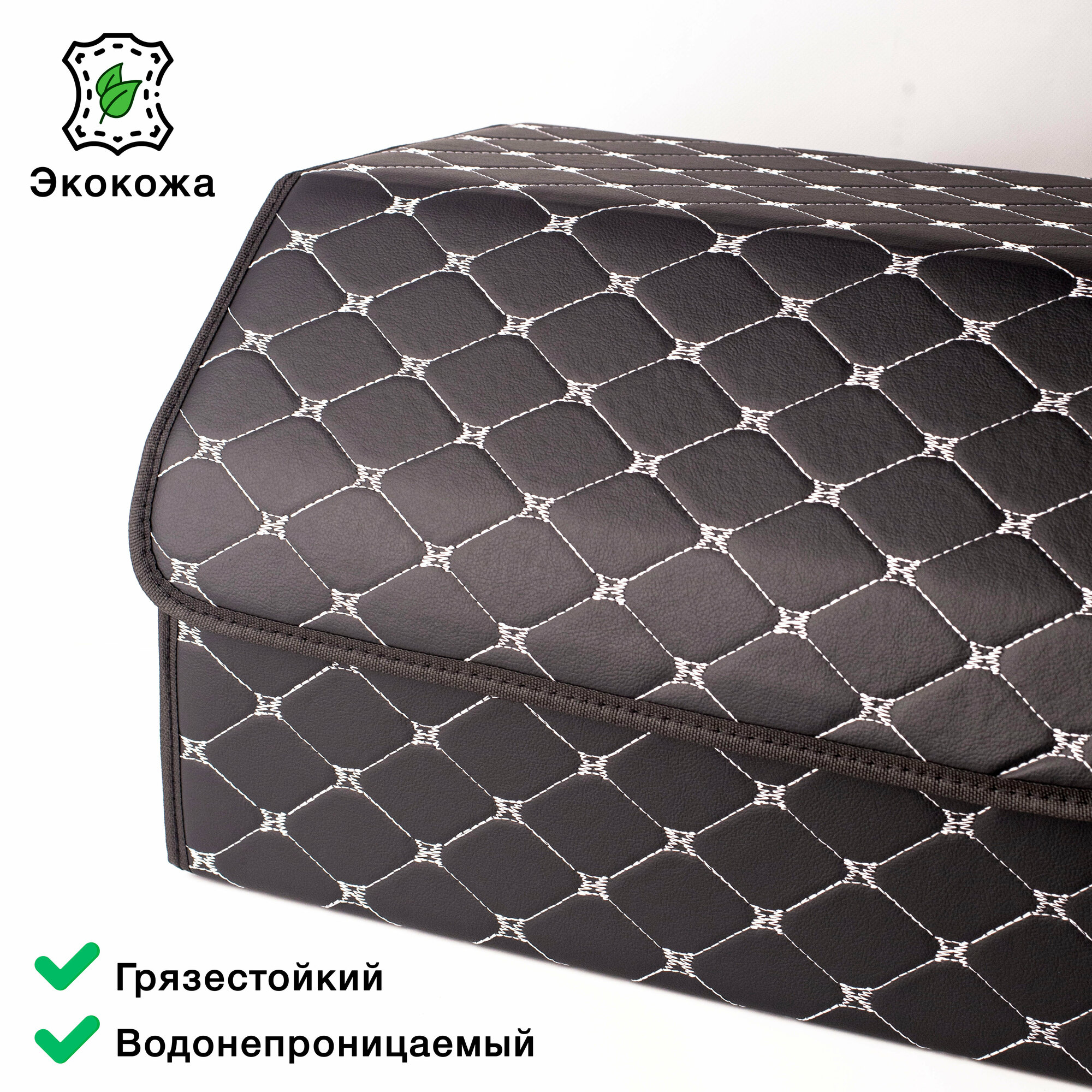 Саквояж в багажник автомобильный эко кожа черная синий ромб, объем 45 л