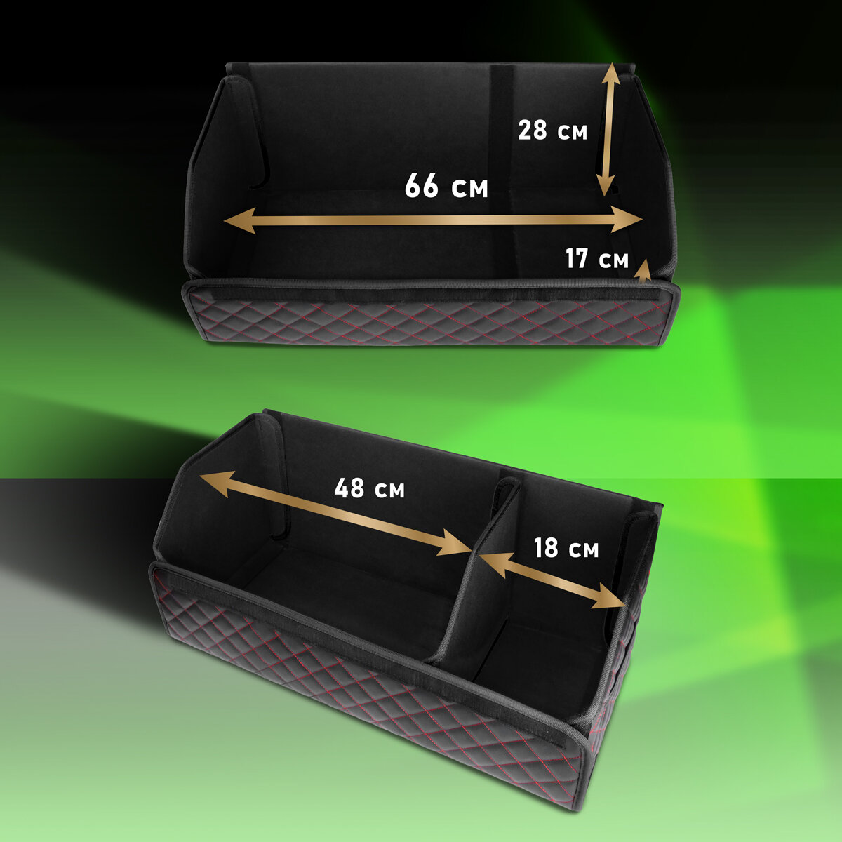 CarCape/Органайзер в багажник автомобиля. Автомобильный бокс для хранения. Модель Classic ромб 50*30см/ Черный, красная строчка 1 200 ₽