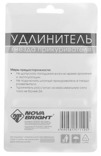 Аксессуары 39947 Удлинитель прикуривателя 12-24V 3м. NOVA BRIGHT информация: