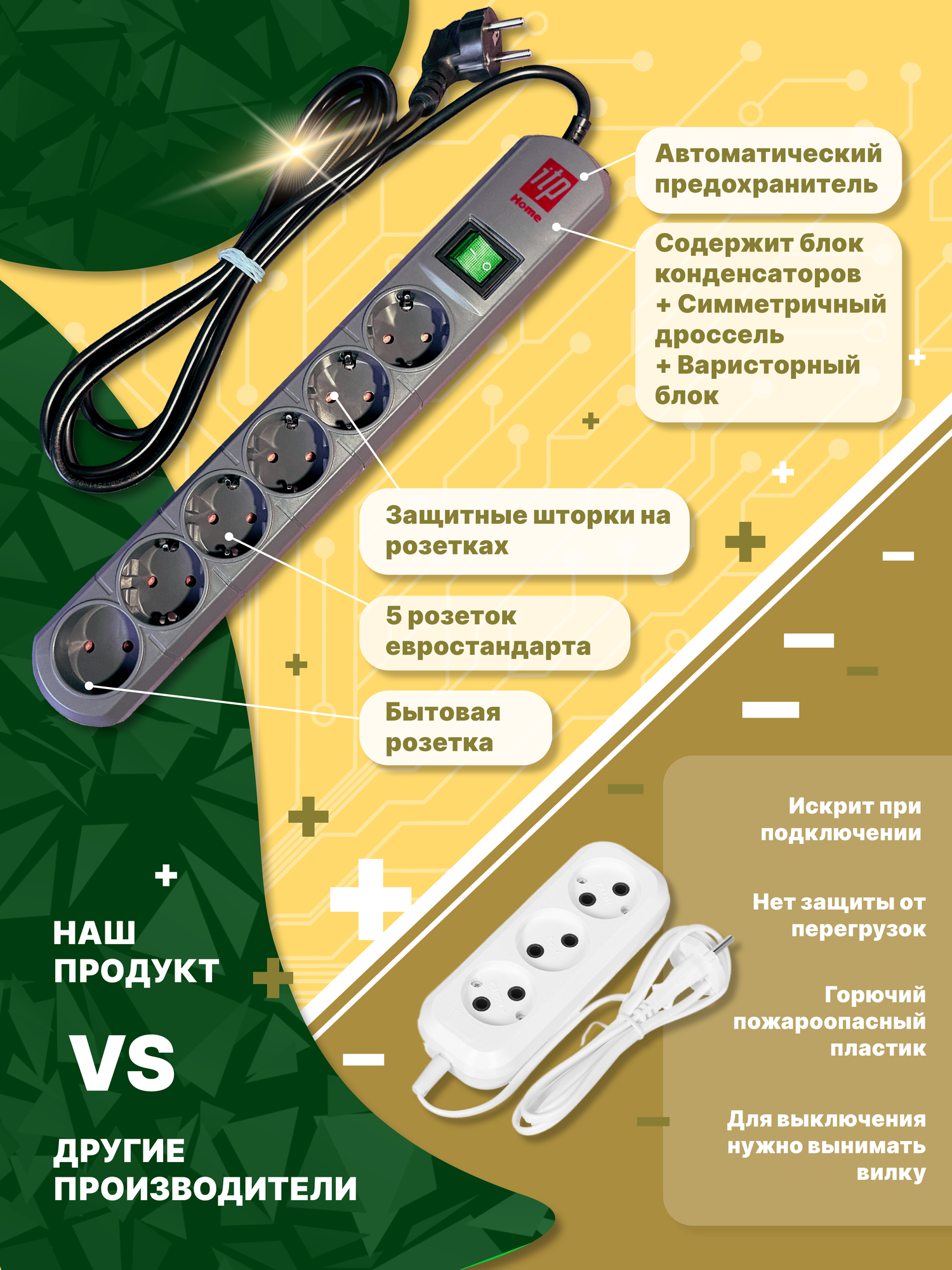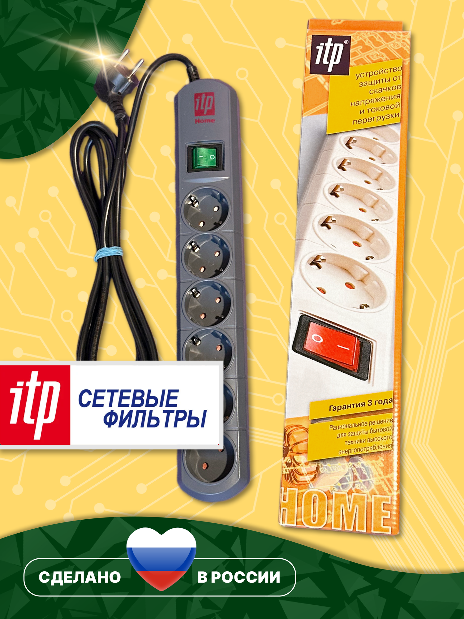 Отзывы на Сетевой фильтр ITP HOME , 6 розеток, кабель 2 метра , 10 ампер, 2200 Ватт, Россия.