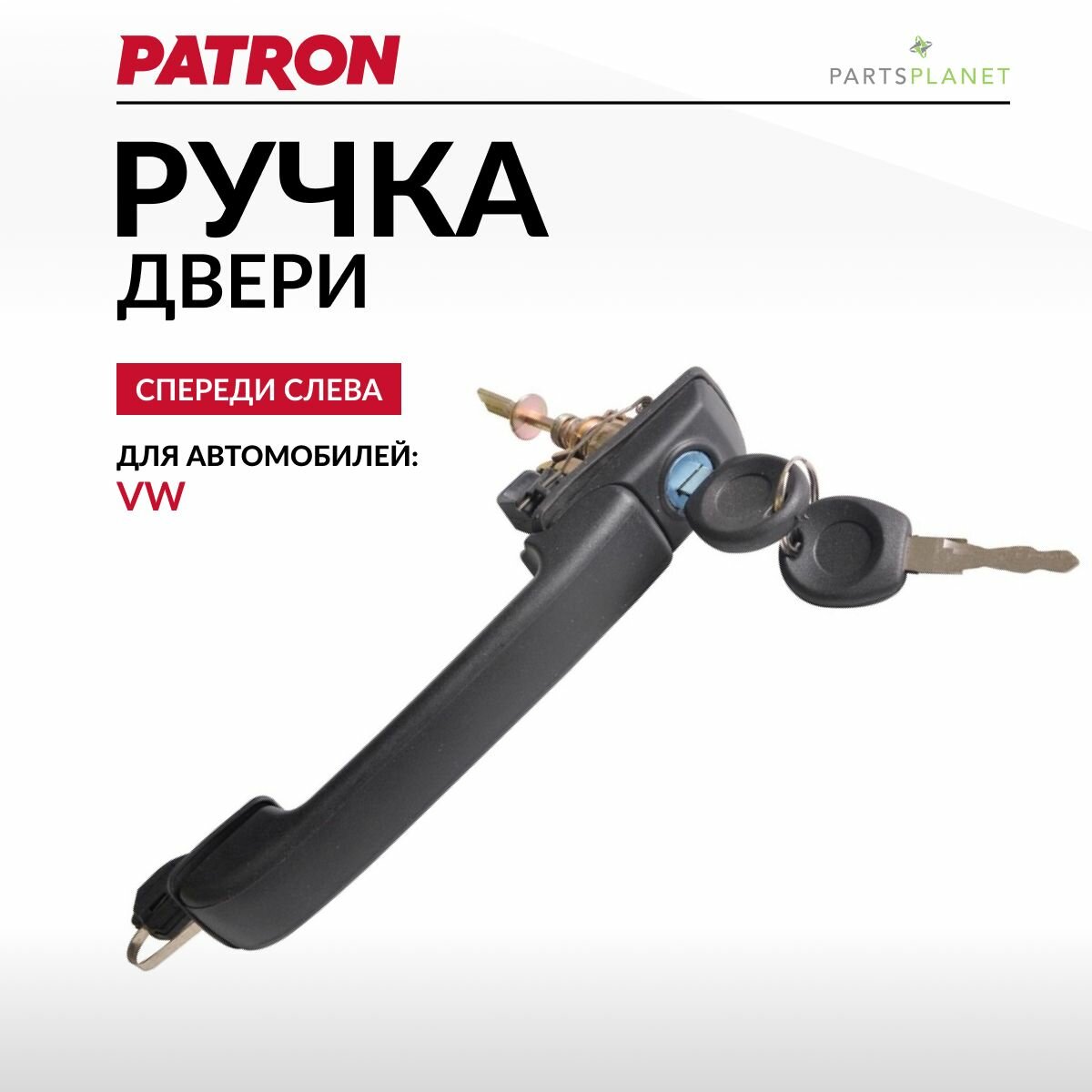 Ручка двери передняя левая (с замком и ключом) VW: GOLF 1.4/1.6/1.8/1.9D/2.0/2.8 91-99, VENTO 91-98 PATRON P20-0012 | цена за 1 шт