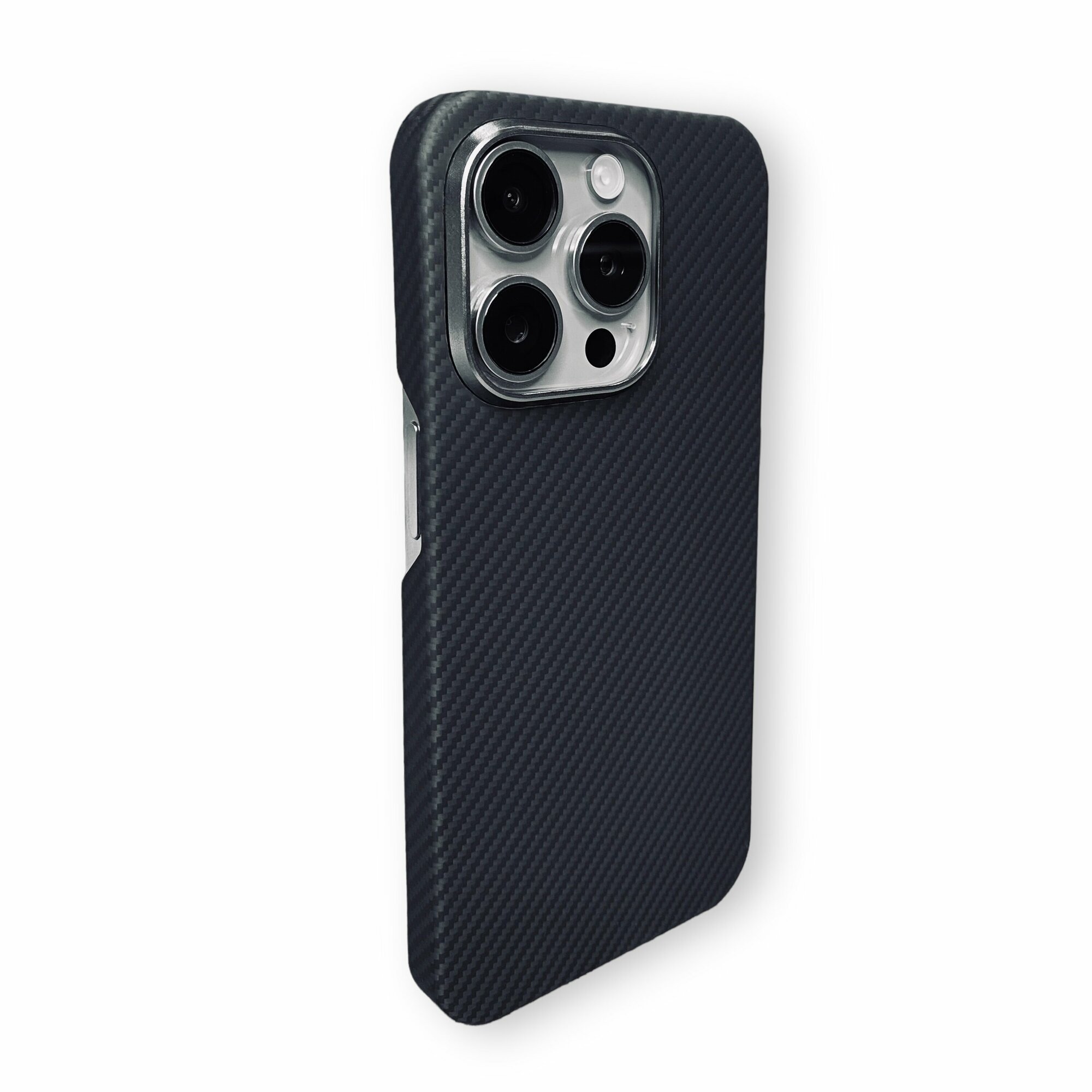 10 цен на Чехол карбоновый для iPhone 15 pro Max (MagSafe) Кевларовый из арамидного волокна, ультратонкий, сверхпрочный. Чёрный, 600D