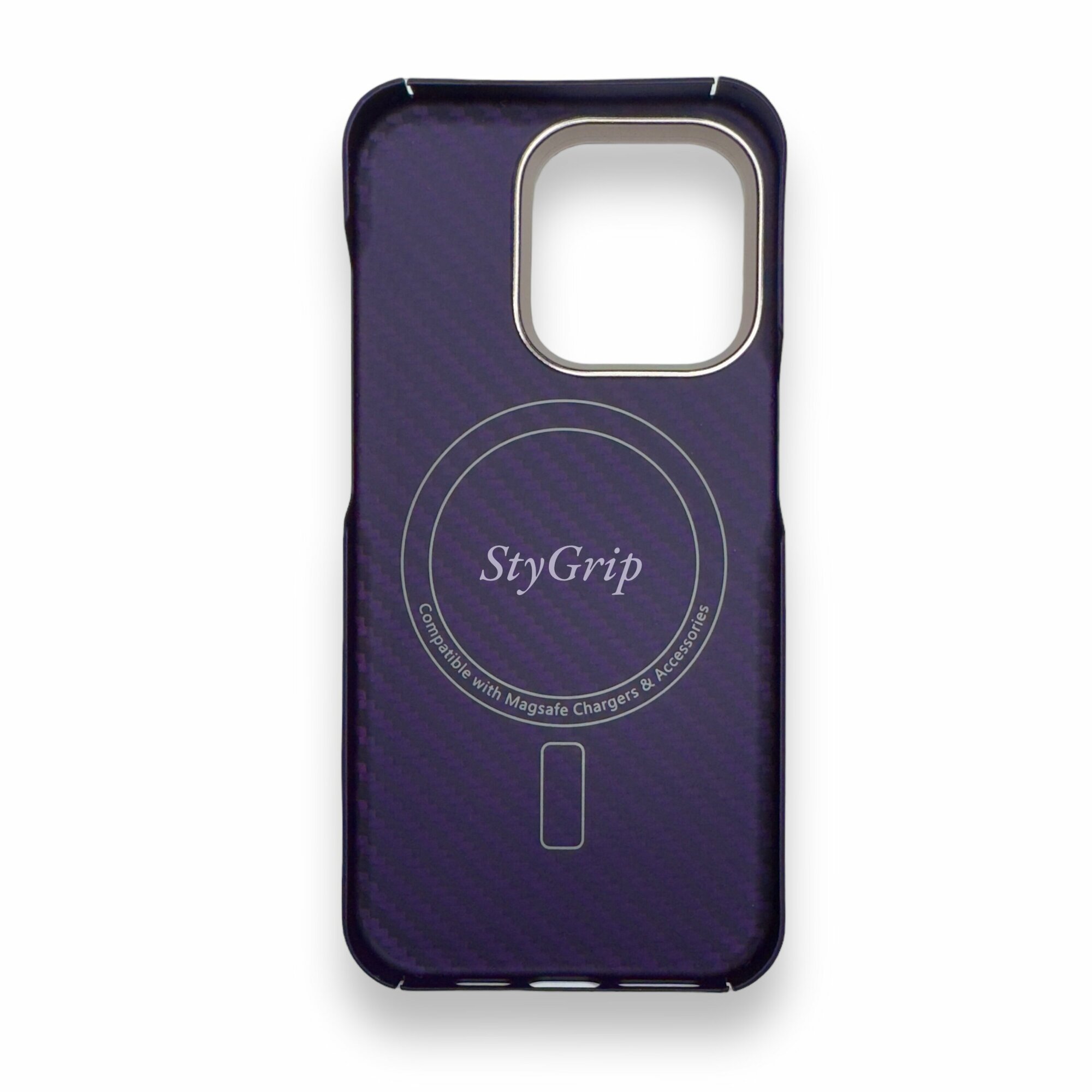 Отзывы на Чехол карбоновый для iPhone 15 pro Max (MagSafe) Кевларовый из арамидного волокна, ультратонкий, сверхпрочный. Фиолетовый/Черный