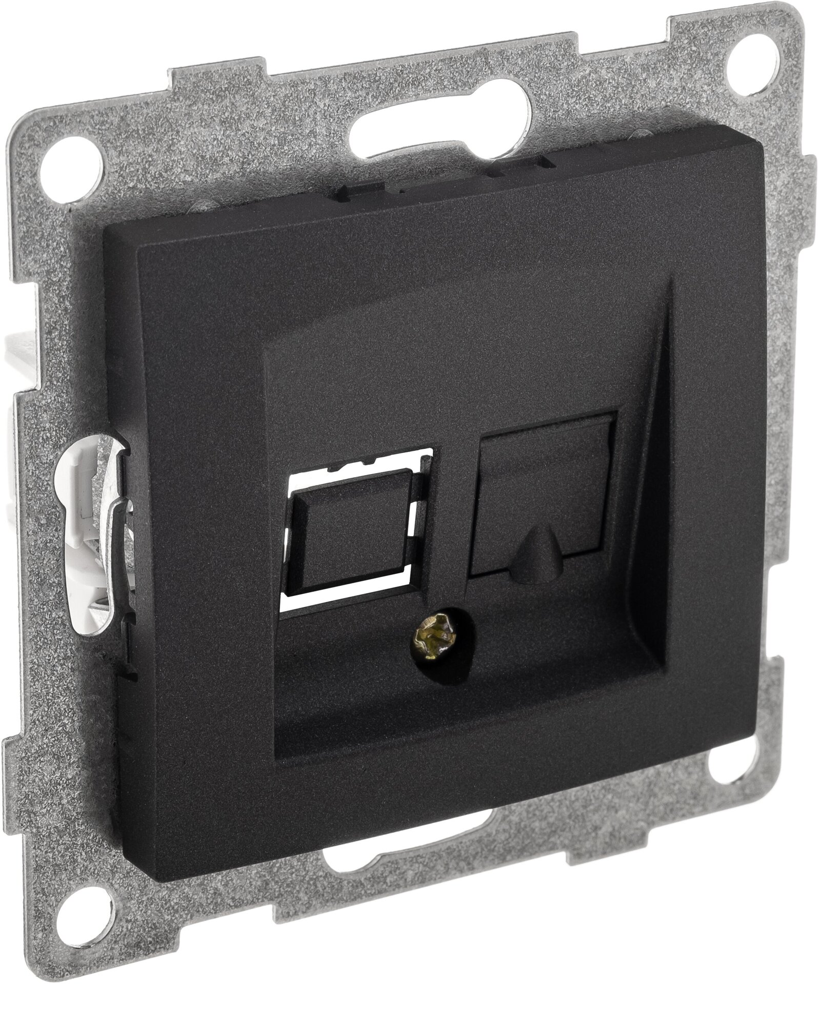 Розетка компьютерная 1-м СП Bravo RJ45 механизм графит GUSI С10К1-010 информация: