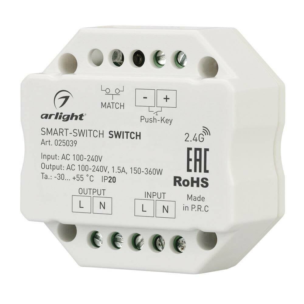 Отзывы на Контроллер-выключатель SMART-S2-SWITCH (230V, 1.5A, 2.4G) (Arlight, IP20 Пластик, 5 лет) Артикул 025039