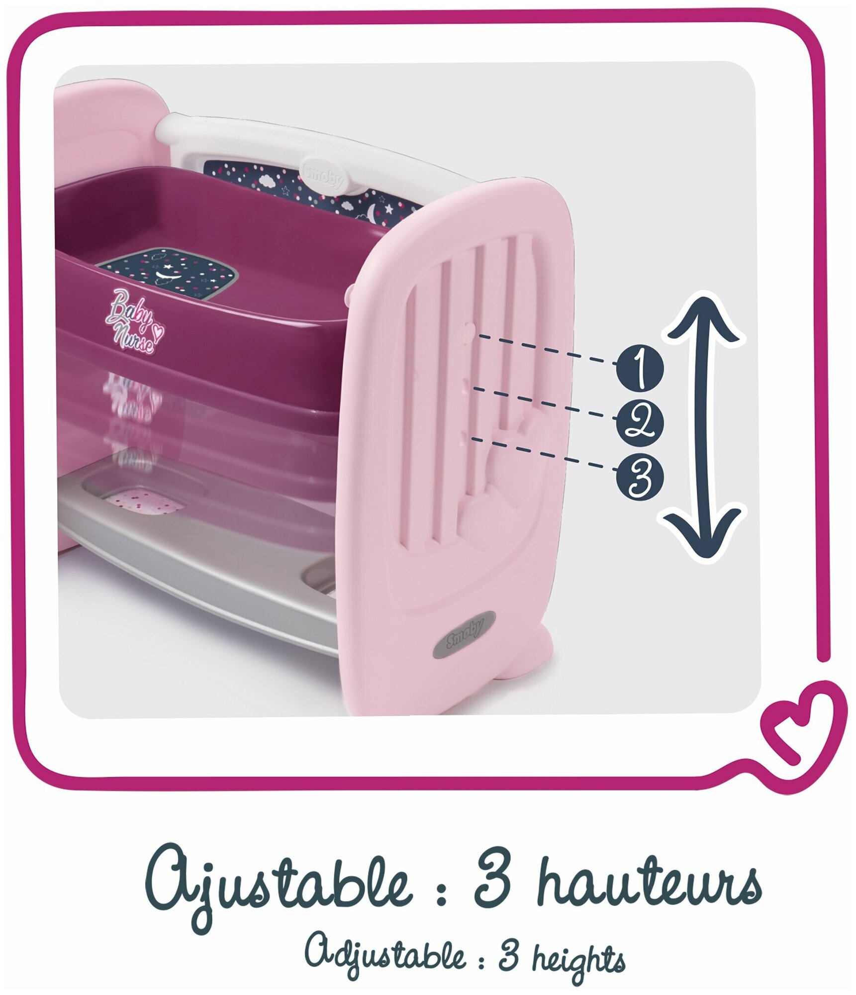 Кроватка для пупса 2 в 1 с регулируемой высотой Baby Nurse, Smoby (игровой набор, кукла, 8 аксессуаров, 220353)