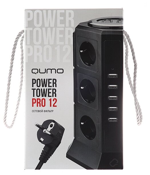 10 цен на Сетевой фильтр Qumo Power Tower Pro 12SP5U (p-0001), 12 розеток, 2200 Вт, 10A, кабель 2м 3*1 мм чист .