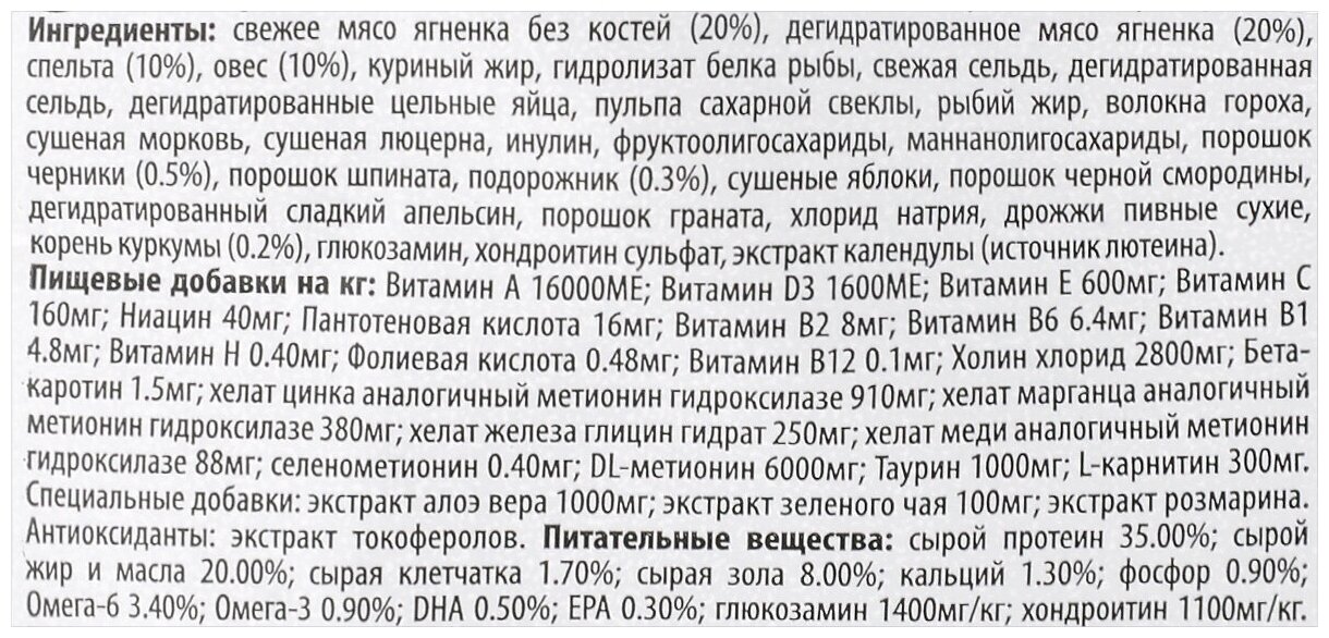 | Особые потребности | беззерновой / для активных животных / для беременных/кормящих / Беременные и кормящие |