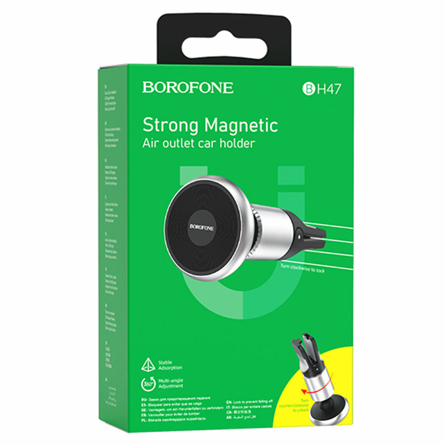 Автодержатель Borofone BH47 Cool move air outlet magnetic car holder extended version, black silver информация: