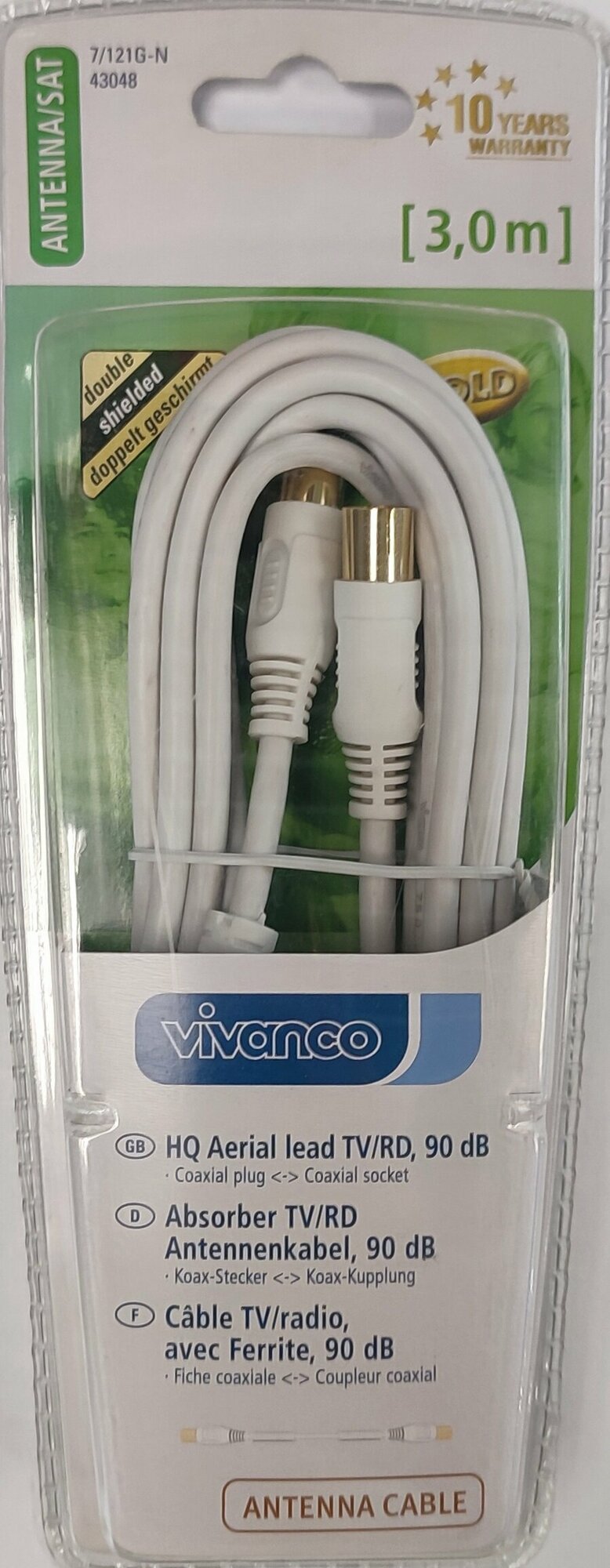 Антенный кабель VIVANCO 7/121G-N 43048 TV, белый 3м BL1, 1шт информация: