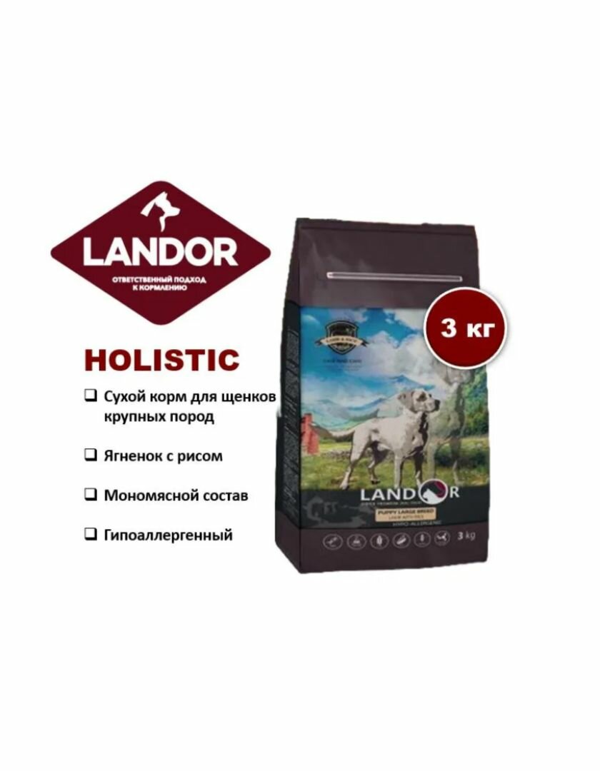 Cухой корм для щенков крупных пород от 1 до 18 месяцев LANDOR ягненок с рисом, 3 кг информация: