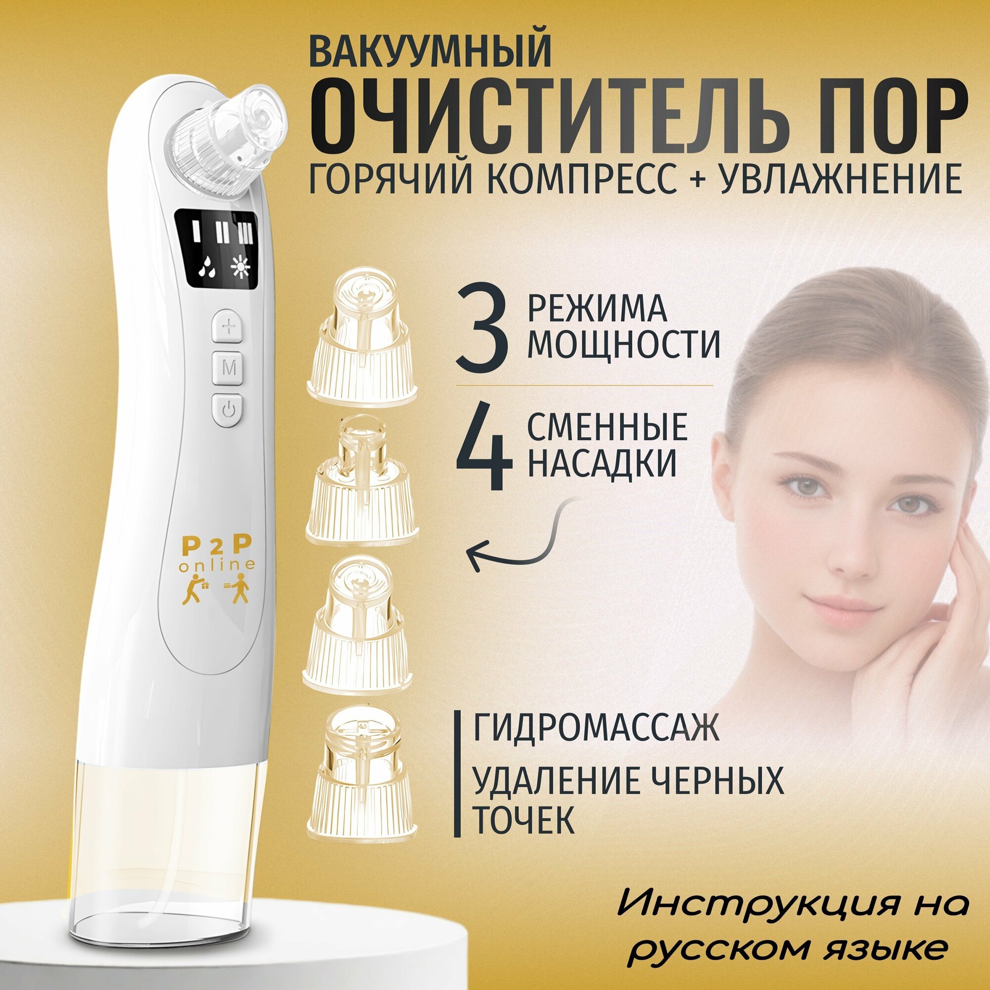 Отзывы на Мощный вакуумный очиститель пор. Гидропилинг + Компресс от черных точек. Прибор для сужения пор на лице. Массажер для чистки лица