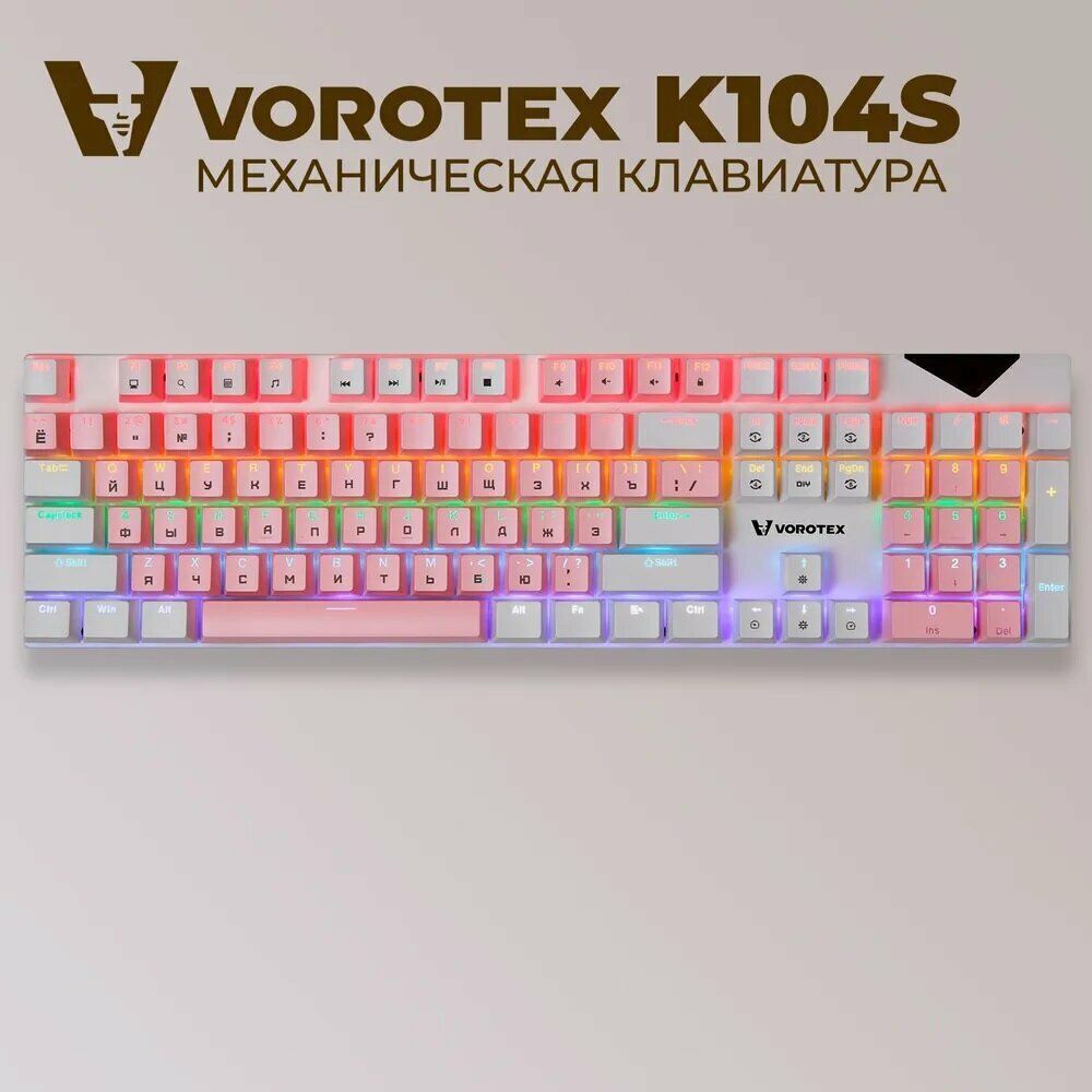 Клавиатура игровая проводная VOROTEX K104S Blue Switch, русская раскладка (Белый, розовый) 3 690 ₽