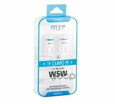 MTF-LIGHT W5W50PT Светодиодная автолампа MTF Light W5W/T10, 12В, 1Вт, 5000К (белый свет), линза матовая, 2шт