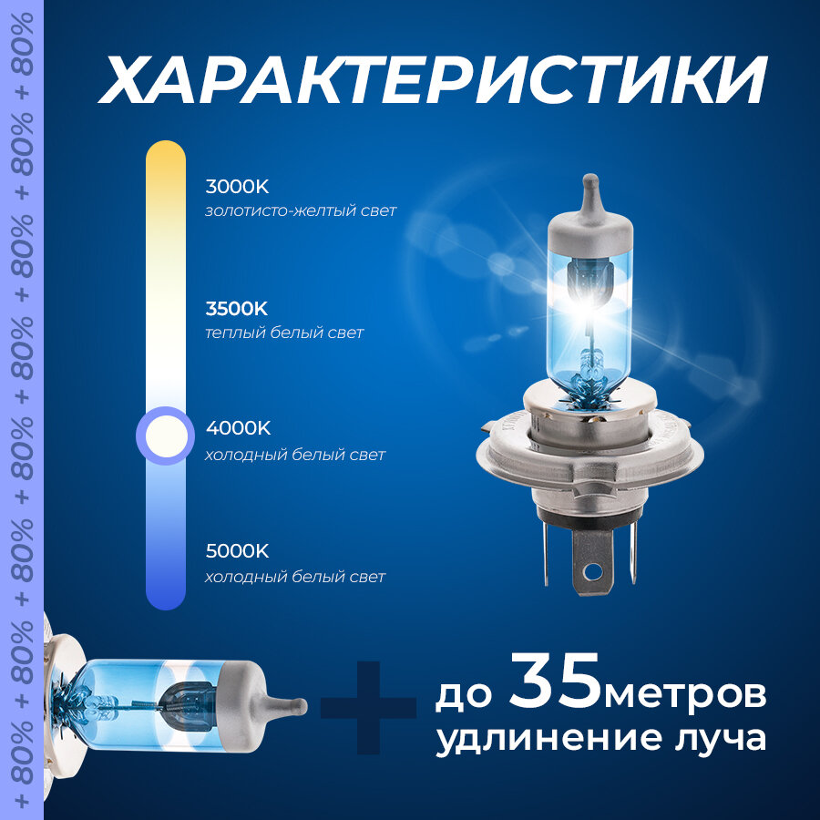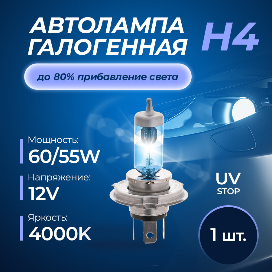 Автолампа H4 12v60/55w(P43t)KraftPro+80%more light