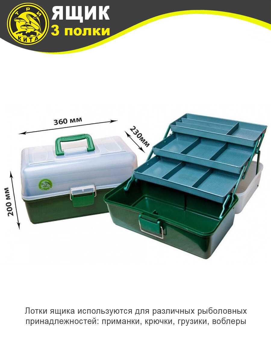 Ящик рыболовный для хранения вещей 3 лотка / трёхъярусный / органайзер для рыбалки / снастей / приманок / летней / зимней информация: