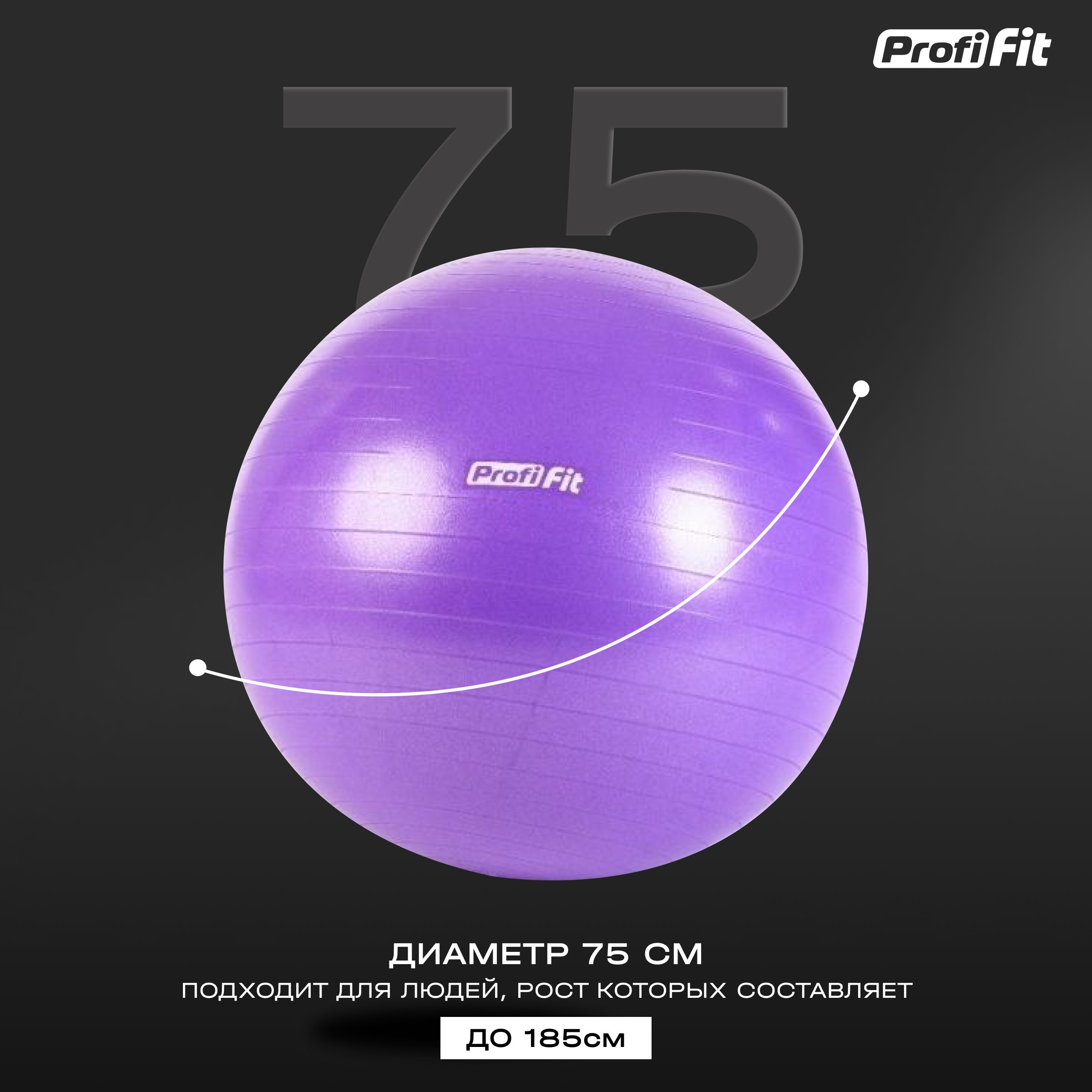 10 цен на Фитбол Profi-Fit, большой мяч для гимнастики и фитнеса и пилатеса, антивзрыв (75 см, фиолетовый)