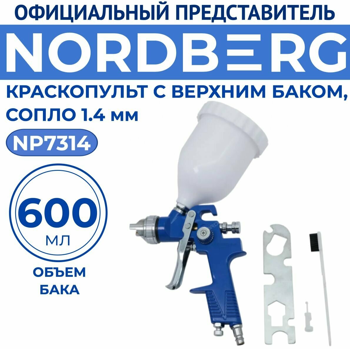 | Комплектация | КРАСКОПУЛЬТ HVLP с верхним баком, сопло 1,4 мм NORDBERG NP7314 |