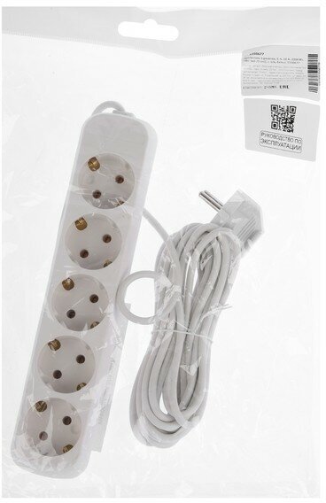 Luazon Lighting Удлинитель Luazon Lighting ECO, 5 розеток, 5 м, 10 А, 2200 Вт, ПВС 3х0.75 мм2, с з/к, белый информация: