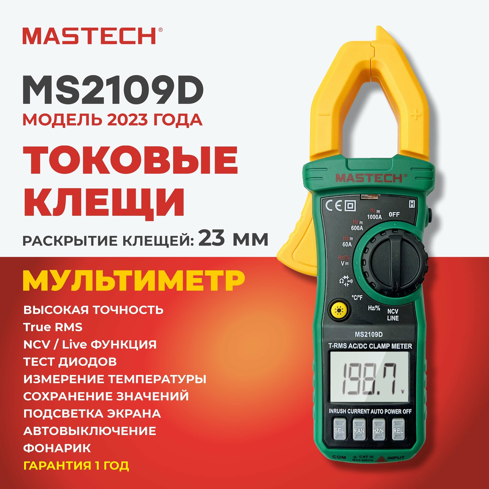 10 цен на Токовые клещи MS2109D MASTECH 1000A пусковые токи ёмкость температура частота разрядность 6000