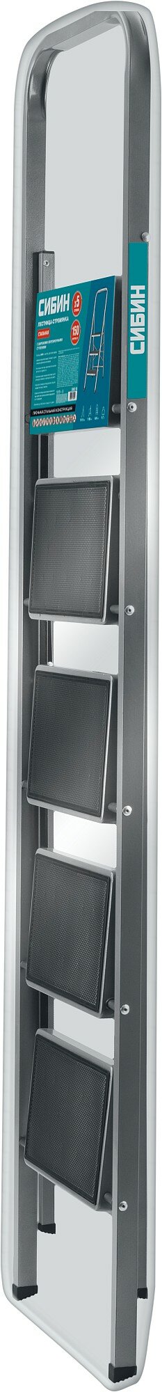 СИБИН c широкими обрезиненными ступенями, 5 ступени, 118 см, стальная, стремянка (38807-05)