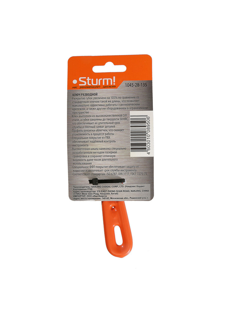 Разводной ключ с тонкими губками, 135 мм, зев 34мм, фосфатированный, Sturm! информация: