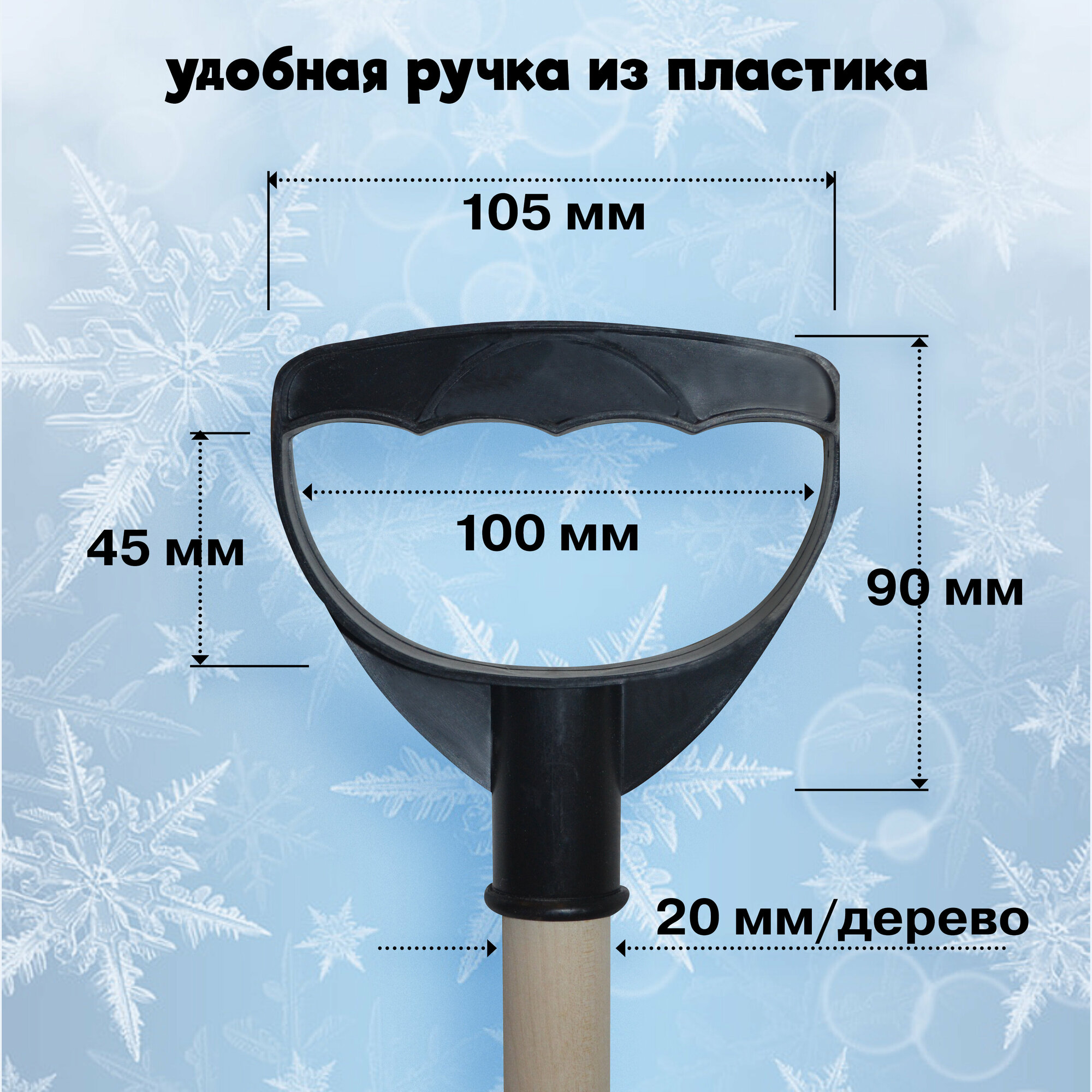 Снеговая лопата с оцинкованной планкой 530х325 мм. За счет своей прочности ускорит процесс очистки территории около дома, подъезда.