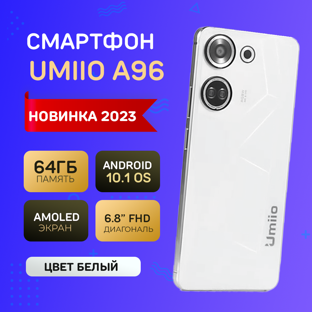 Смартфон Umiio, модель A96, 6 ГБ оперативной памяти, 64 ГБ встроенной памяти, Android 10, белый информация: