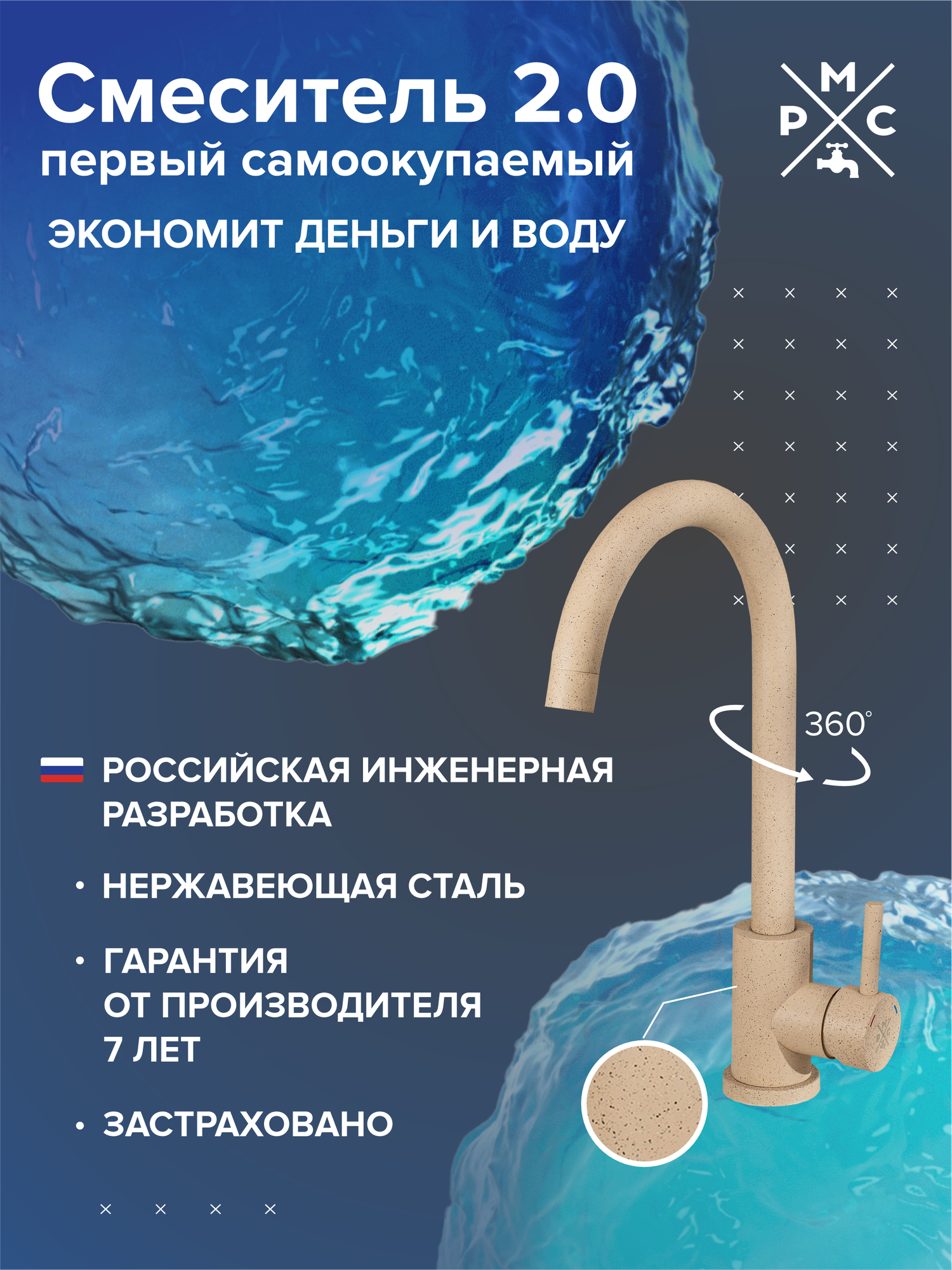 РМС Смеситель для кухни SUS124-017F
