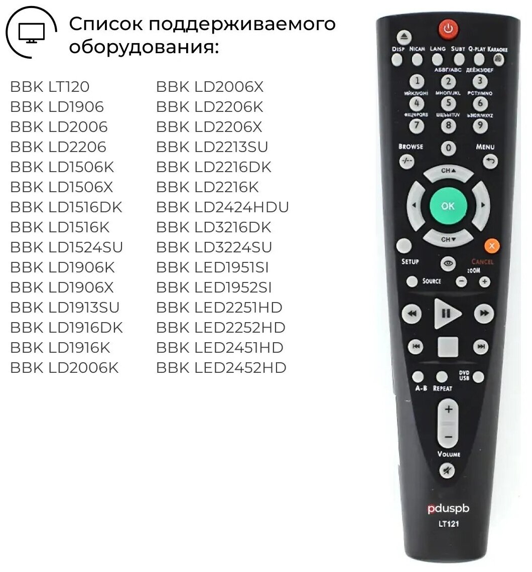 10 цен на Пульт LT121 (LD1006TI) для телевизора BBK (+DVD+караоке)