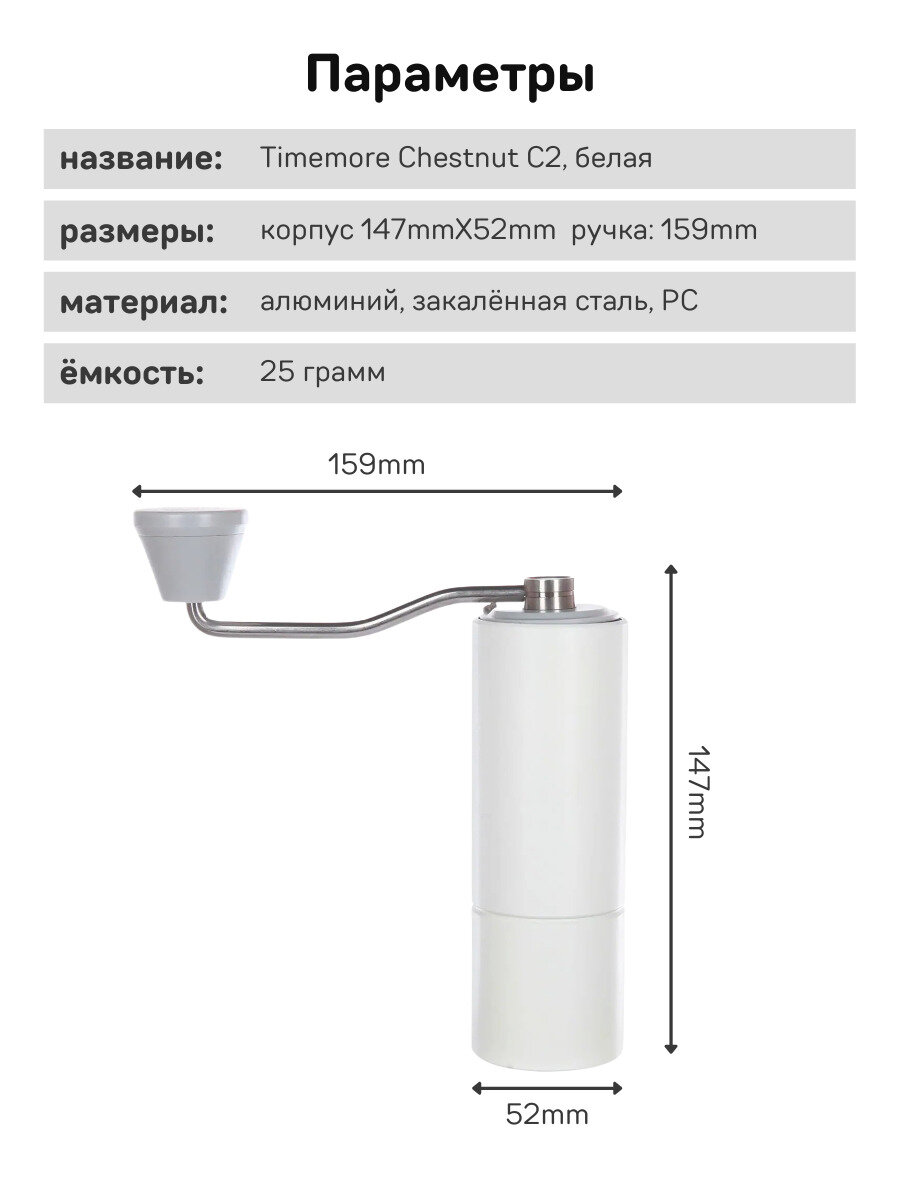Кофемолка ручная Timemore Chestnut C2, белая информация: