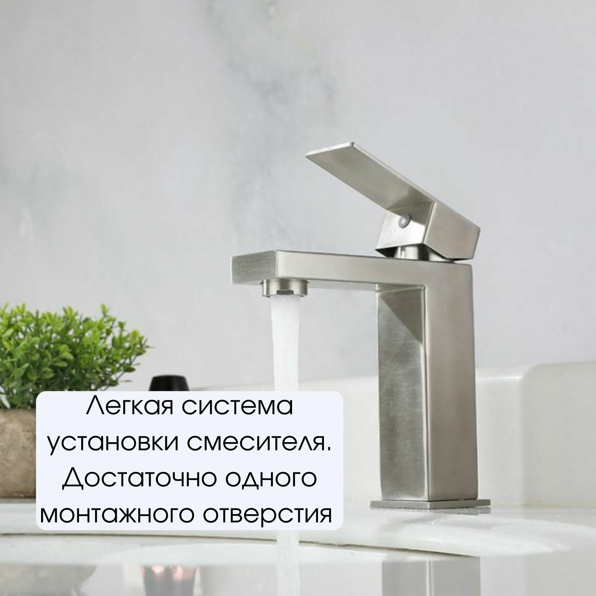 10 цен на Смеситель для раковины квадратный, однорычажный, нержавеющая сталь, серый сатин