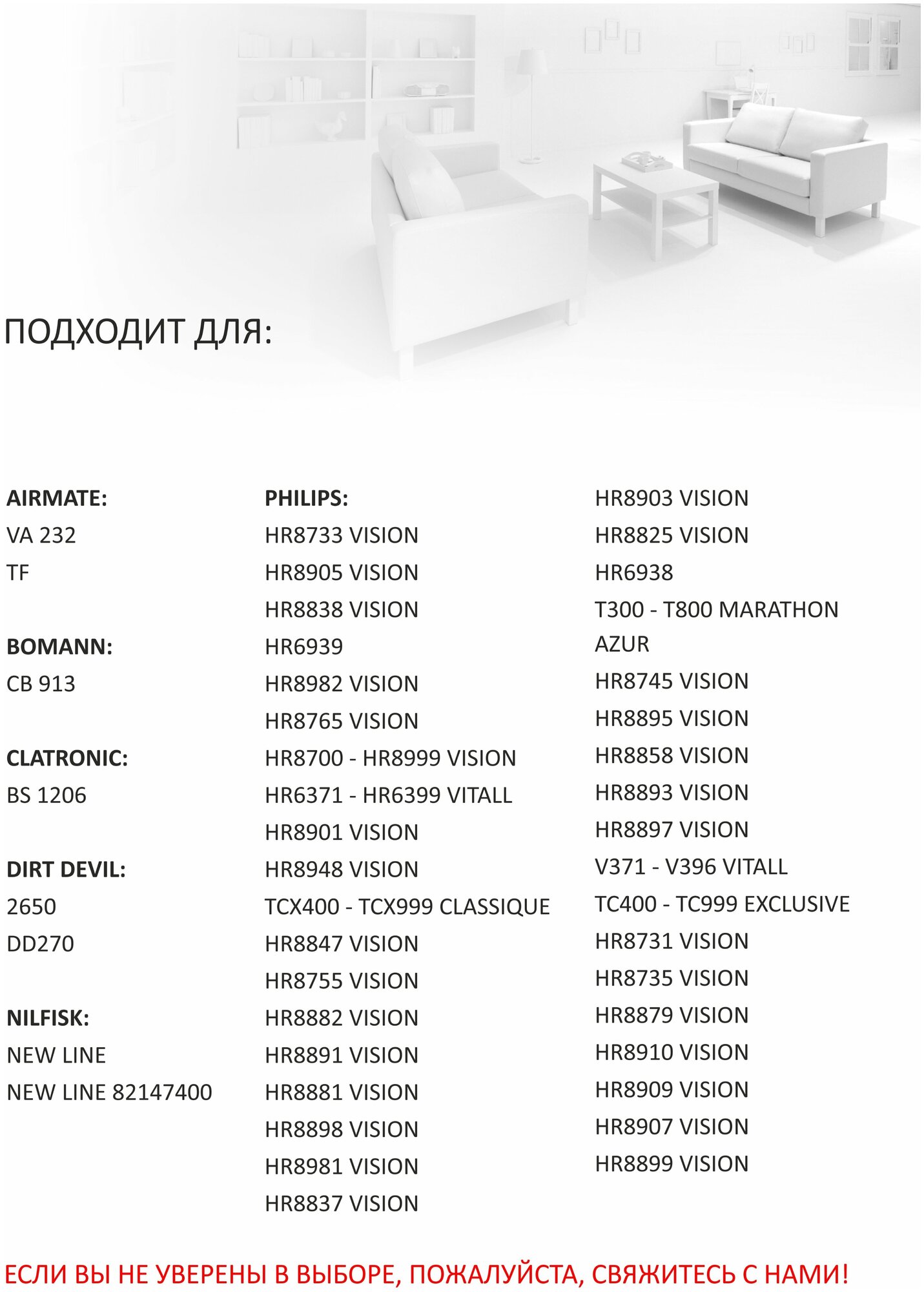 | Производитель совместимого пылесоса | Airmate, Bomann, Dirt Devil, Philips |