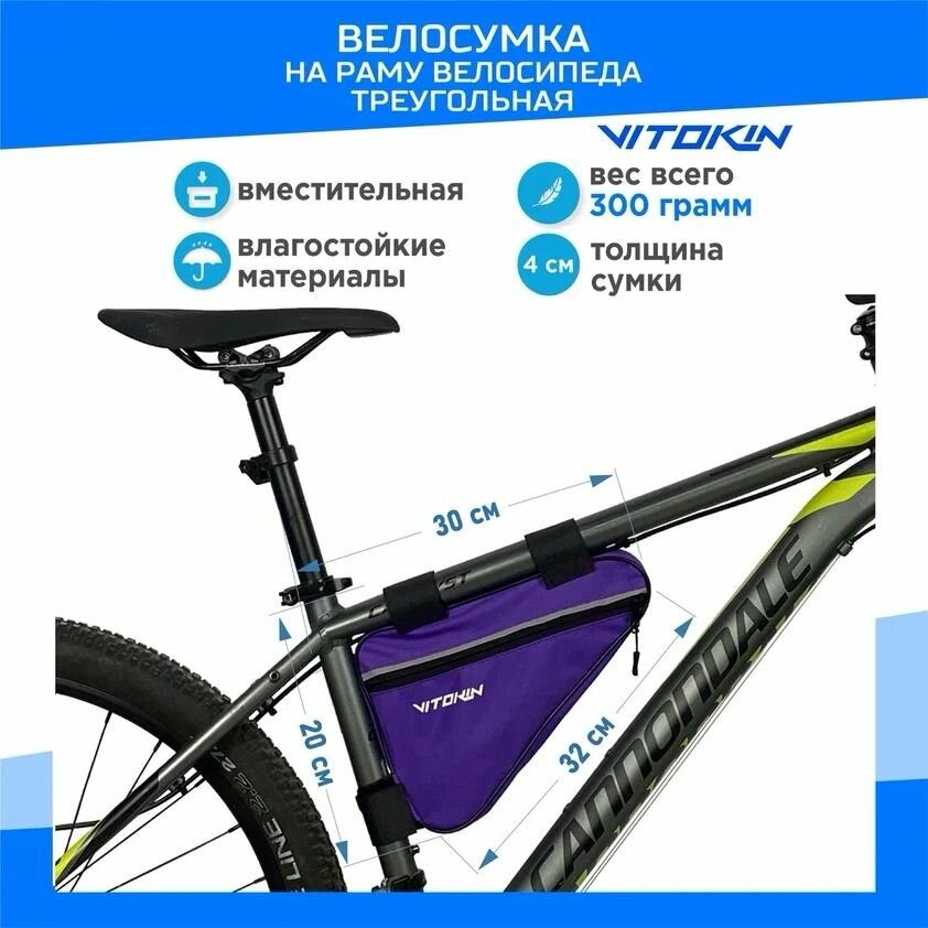 Велосумка под раму велосипеда, сумка велосипедная треугольная VITOKIN, фиолетовая 520 ₽