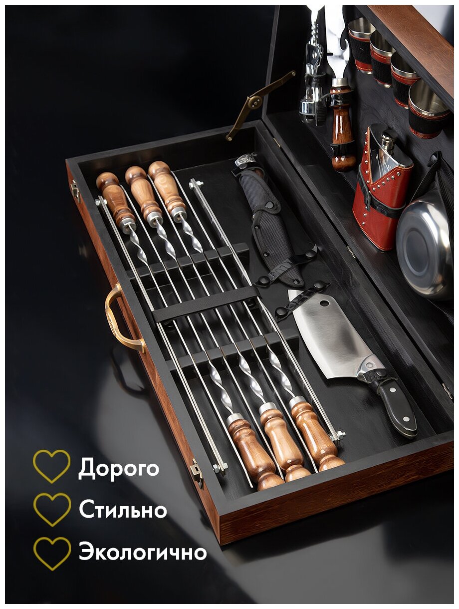 Отзывы на Подарочный набор шампуров с деревянной ручкой GLAMKAMP Эко-Премиум #03. Шашлычный набор в кейсе / чемодане для пикника, барбекю, гриля, мангала