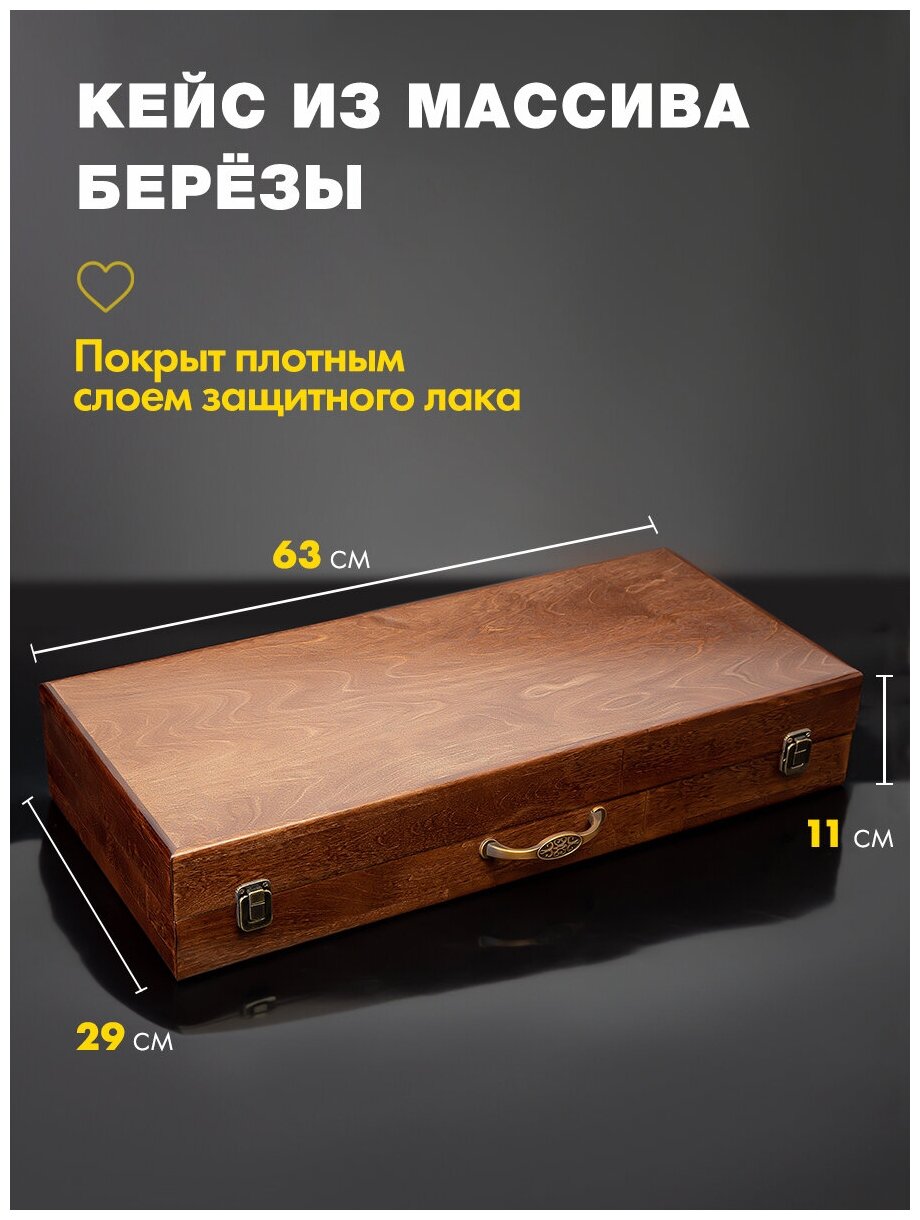 Подарочный набор шампуров с деревянной ручкой GLAMKAMP Эко-Премиум #03. Шашлычный набор в кейсе / чемодане для пикника, барбекю, гриля, мангала информация: