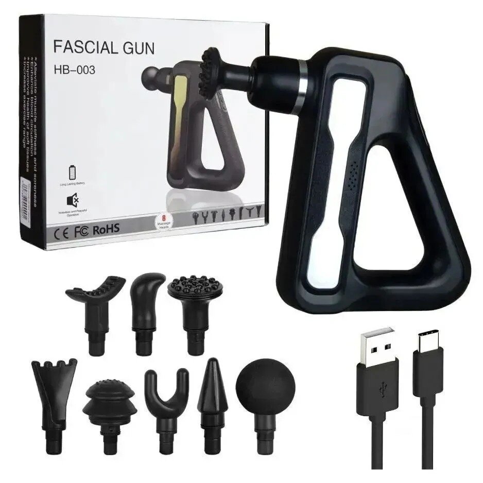 Массажный пистолет перкуссионный Массажер для тела и ног Fascial Gun HB-003 /Массажный мышечный пистолет/ Антицеллюлитный/ 8 насадок/ дисплей информация: