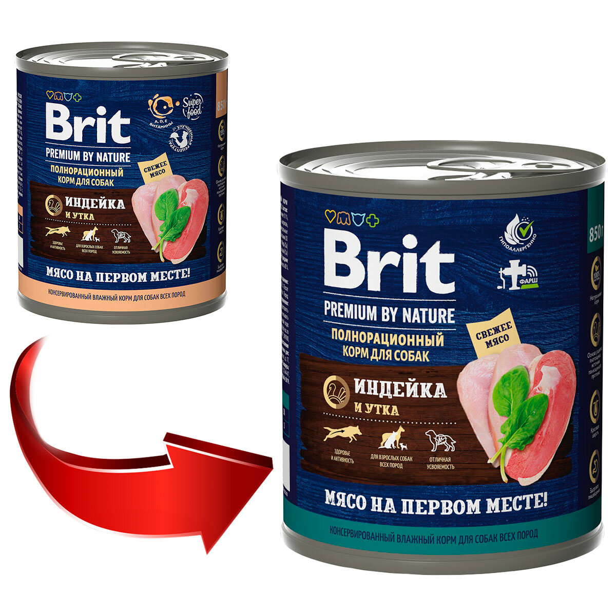 Brit Консервы для собак Premium by Nature с индейкой и уткой 0,850кг 0.85 кг 570 ₽