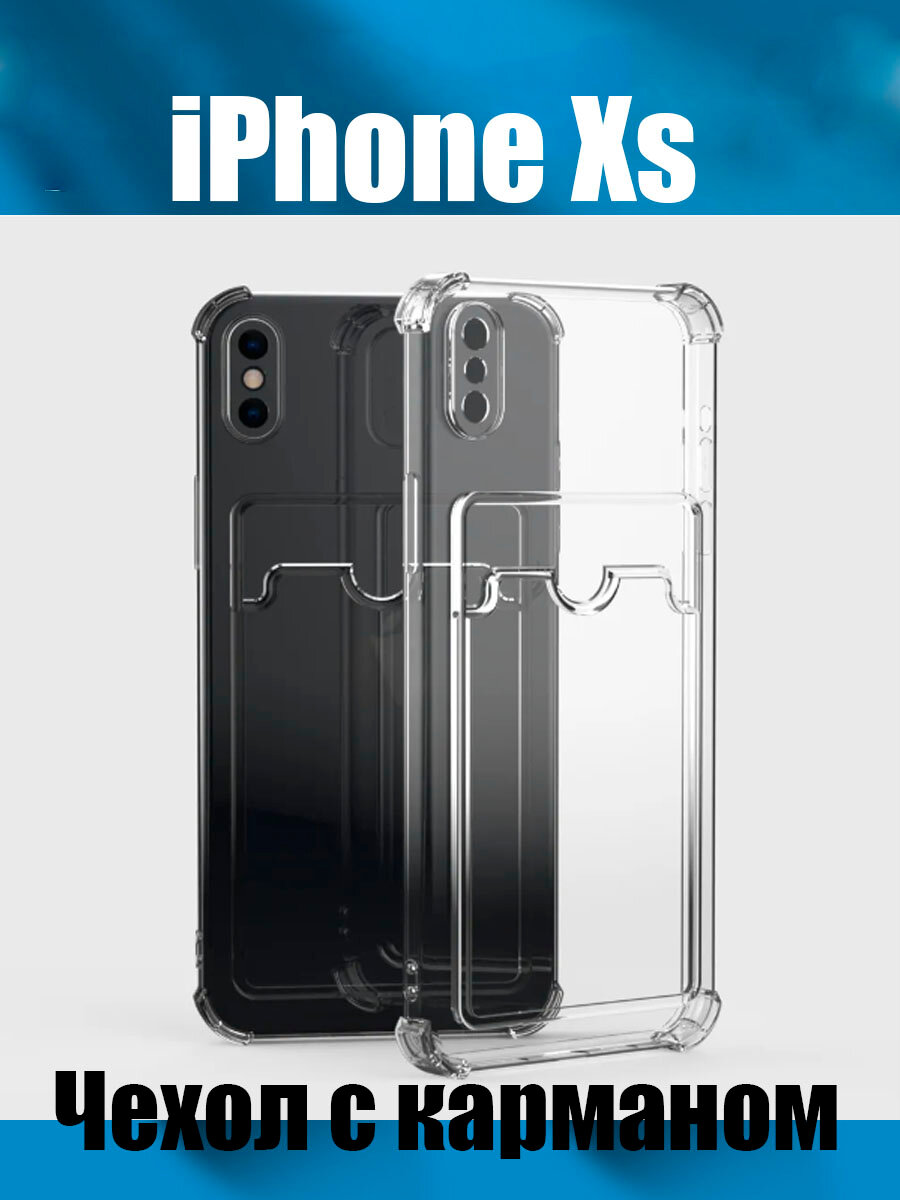 Прозрачный чехол на iPhone X / Xs с карманом для карт информация: