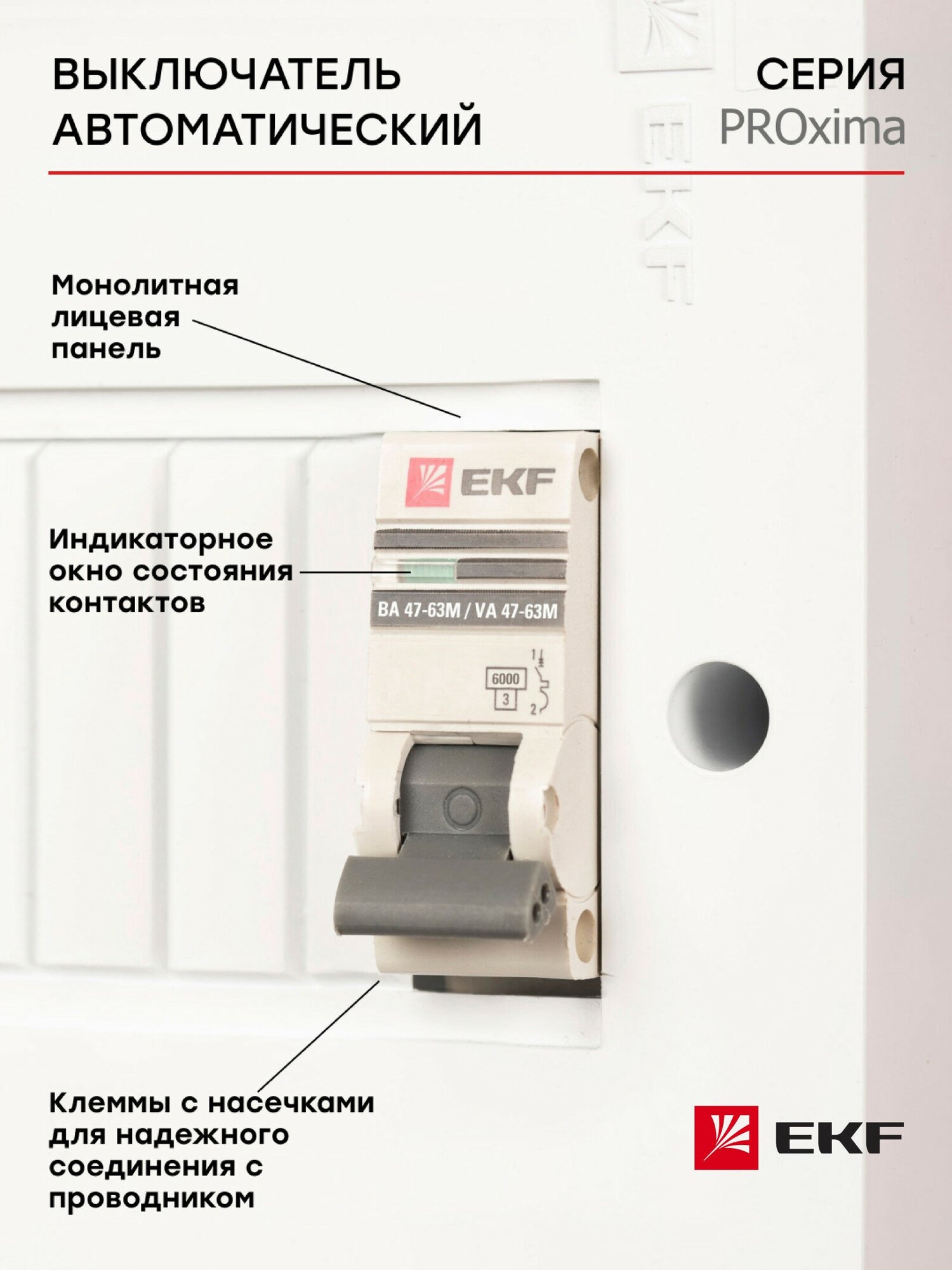 Автоматический выключатель EKF 1P 16А C 6кА ВА 47-63M с эл-маг. расцепителем PROxima mcb4763m-6-1-16C-pro информация:
