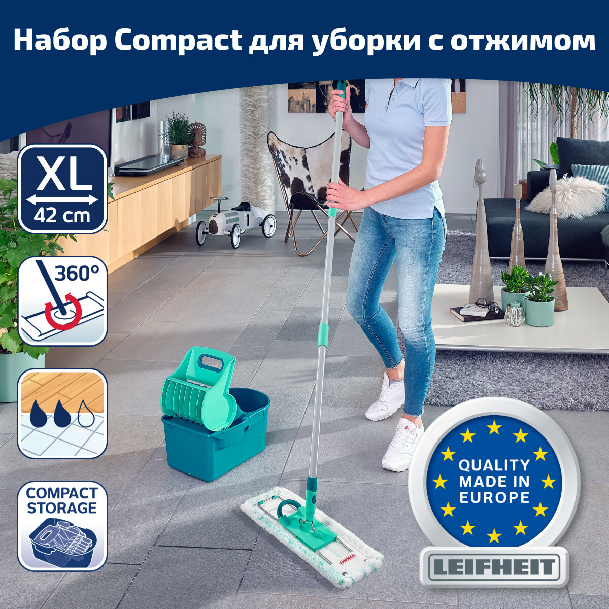 Отзывы на Набор для влажной уборки Leifheit Profi Compact: ведро с прессом для отжима и швабра