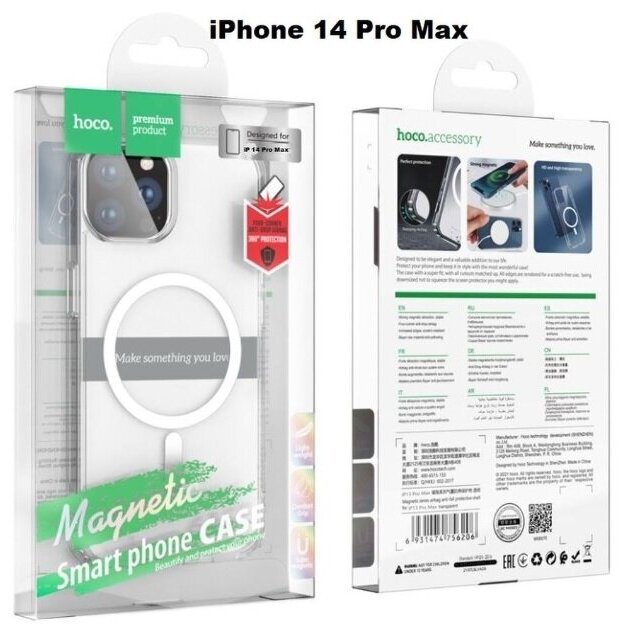Чехол силиконовый Hoco для Apple iPhone 14 Pro Max, Magnetic series прозрачный