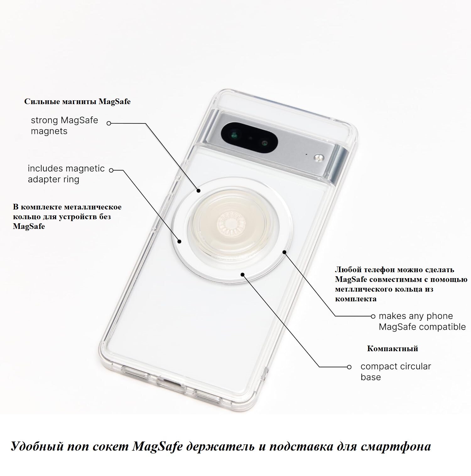 Магнитный держатель попсокет Magsafe складной для iPhone прозрачный информация: