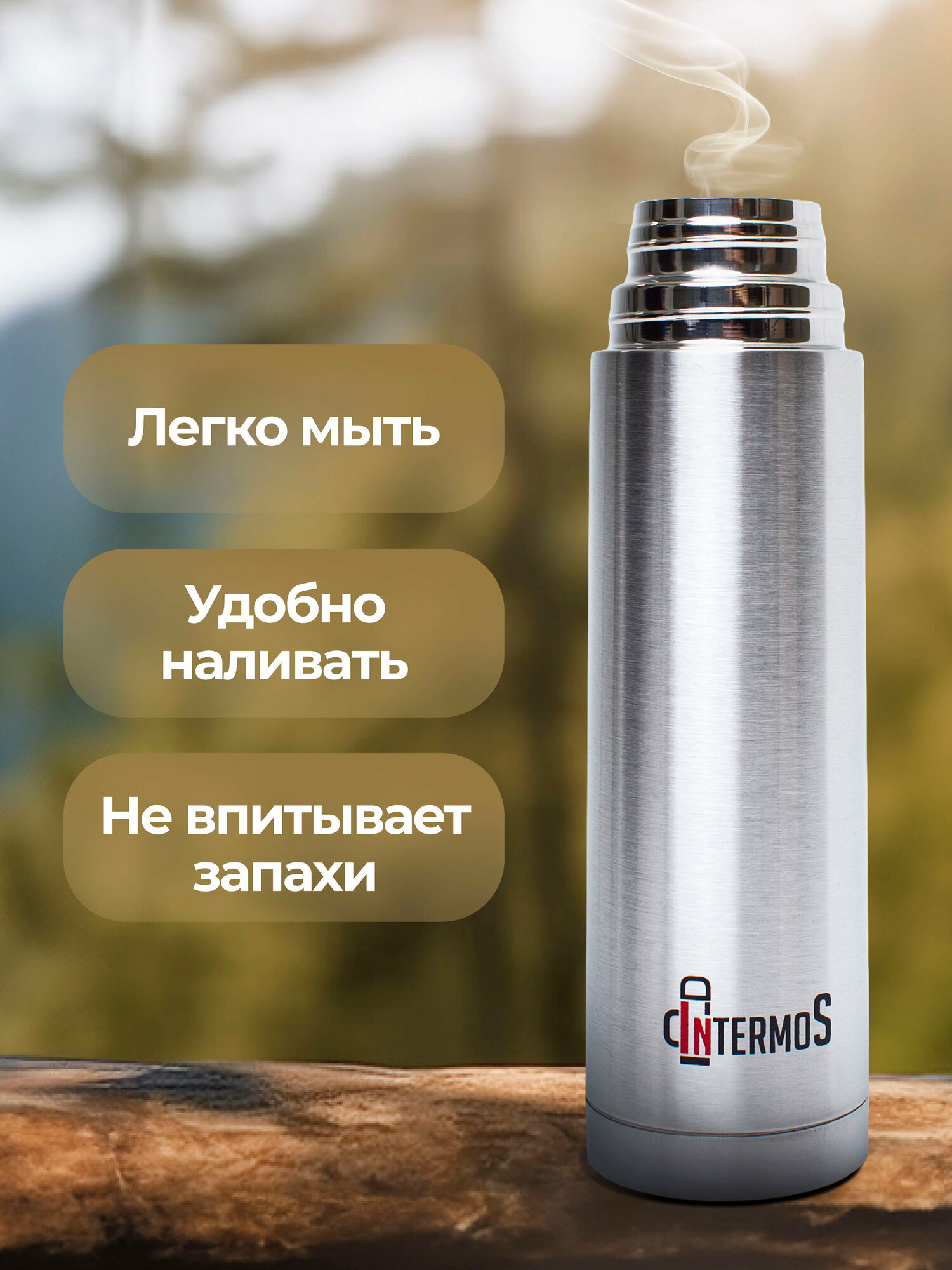Отзывы на Термос Intermos классический с узким горлом с кнопкой, нержавеющая сталь, 1л, хром