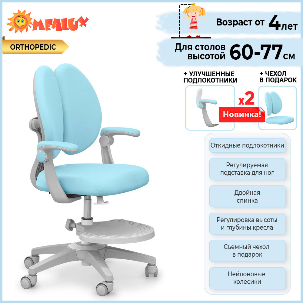 MEALUX Растущее детское кресло для дома Sprint Duo (арт. Y-412) для обычных и растущих парт + подлокотники + подставка для ног + чехол